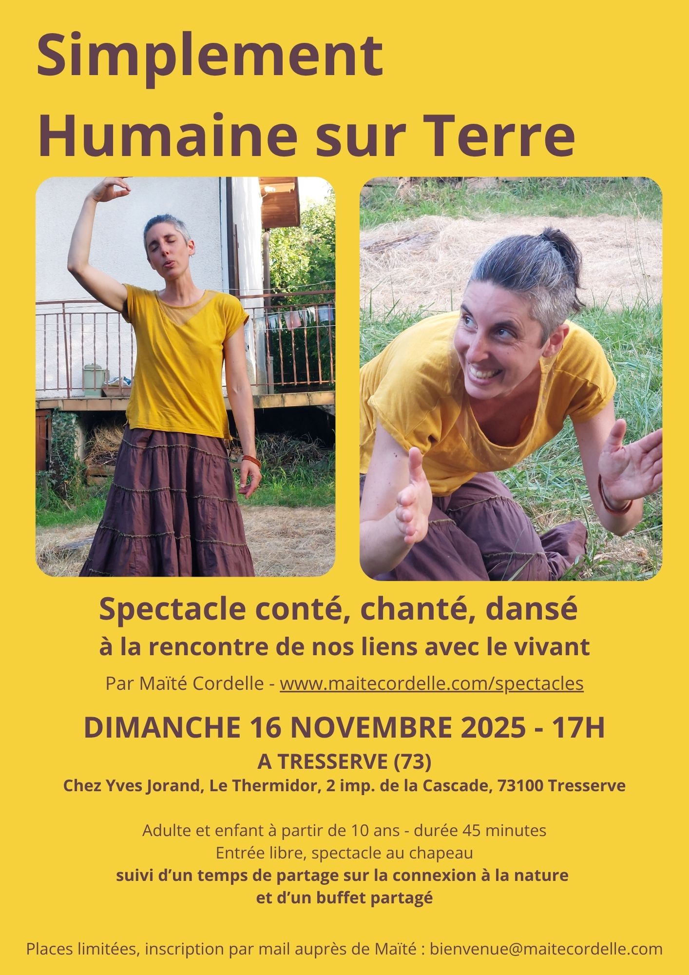 Joué à la demande, en intérieur, en extérieur, autour d’un feu 😉 Soutenu par Copain.e.s de Boue – Humain.e.s Debout – De la Connexion à la Création : https://maitecordelle.com/copaines-debout/